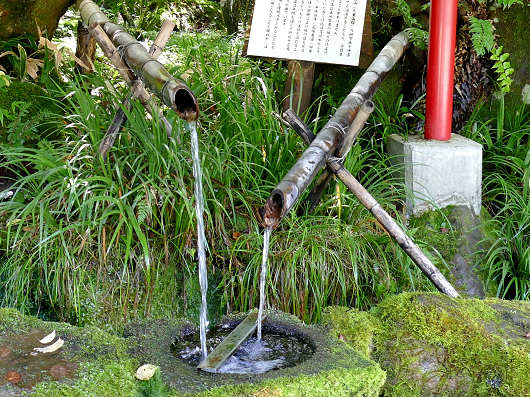 ここには2ヶ所の竹筒から水が流れ出ていて、横の看板にも書かれていた九重の名水が汲めるようになっていました。でも大分県で有料の名水汲み場って珍しいですね。