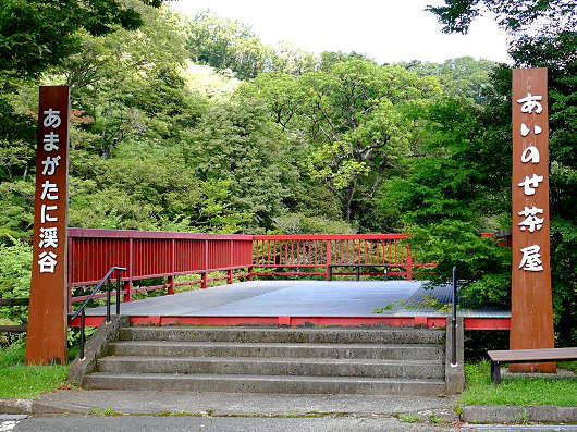 敷地のすぐ横は「天ヶ谷渓谷(あまがたにけいこく)」という深い渓谷になっていて、駐車場の一角には展望所もありました。