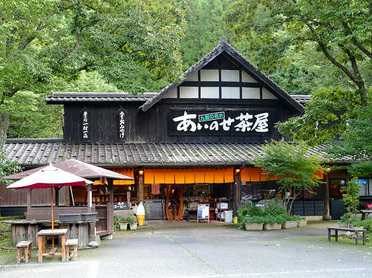 ここが大分県玖珠郡九重町大字田野の県道40号沿いにある物産館・お食事処の「あいのせ茶屋」です。建物の前はとても広い駐車場になっていて、ここだけでも数十台の車が停められそうでしたが・・・