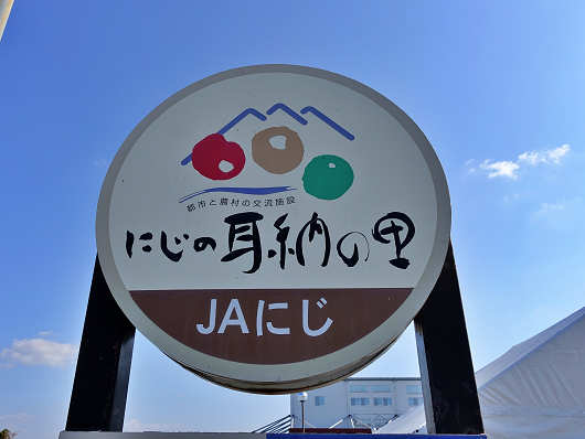 恵蘇宿交差点から数kmほど走ると、福岡県うきは市吉井町にある物産館・直売所の「にじの耳納(みのう)の里」の看板が見えてきたのでここに車を停めました。