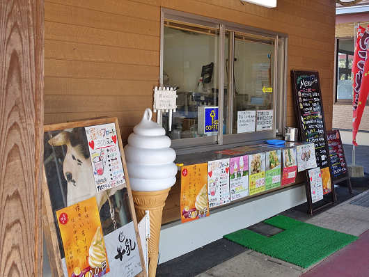 このお店は「アイス工房」と名付けられたテイクアウトのお店です。ここではしぼりたて生乳を使ったソフトクリームやたこ焼きなども販売していました。