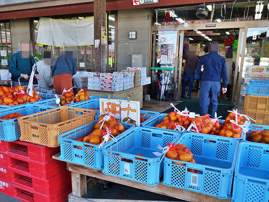 この辺りは果物の産地なので、直売所の入口には多くの柿などが並べられていて、すでに売り切れて空になっているコンテナもありました。