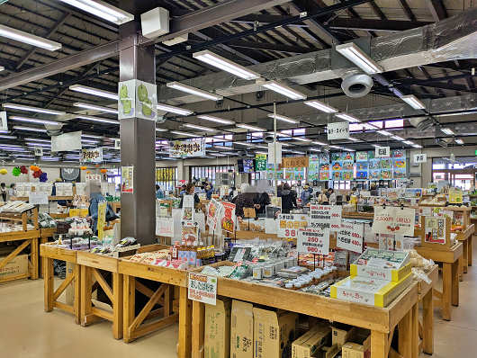 物産館・直売所「にじの耳納の里」の全景です。ここはJAの直売所で駐車場はとても広くて、普通車が200台停められるそうですが、駐車場をざっと見た感じでは8割以上は埋まっているって感じでした。かなり人気の直売所のようですね。