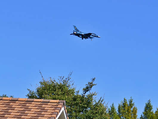 ここではトイレ休憩をして弁当を買うだけの予定でしたが、トイレに向かっていると戦闘機の爆音が聞こえてきて、一機のF2戦闘機が着陸態勢でメタセの杜の上空を通り過ぎて行きました。