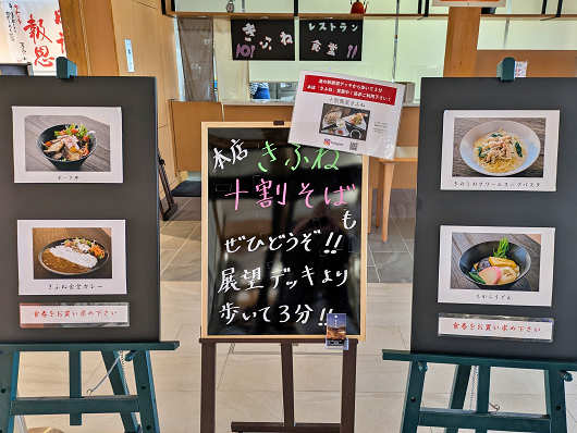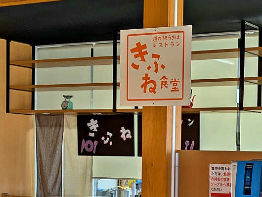 券売機の前には「本店 きふね 十割そば」と書かれたボードがありました。「本格十割蕎麦 きふね」は、このすぐ近くにある宿泊施設も兼ねた古民家レストランで、うきは市では有名なお店なんですよね。