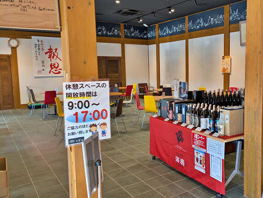 お食事処の手前には新たに休憩スペースができていて、入口付近にはたくさんのお酒も並べられていました。