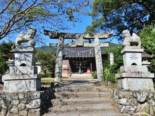駐車場の周囲を見て廻ったら、これから大楠の見物です。大楠の横には小さな神社があって鳥居が建っていました。