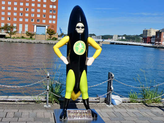 「じーも」から少し離れたところには、エコと節電の使者「バナナマン ブラック」が立っていました。バナナマンブラックは門司港の倉庫で腐って黒くなったちょい悪バナナ(おやじ)の設定だそうです(笑)門司港レトロには愛と正義の使者で全身が黄色の「バナナマン」もいますが、周囲を見渡しても見つかりませんでした。