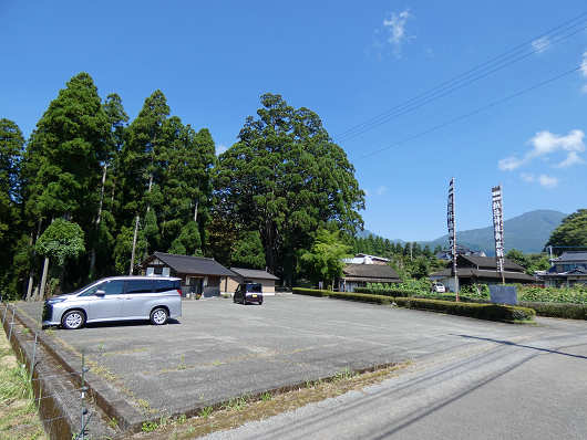 納池公園へは県道30号から逸れたら、狭い農道のような道を1.5㎞ほど走りますが、駐車場はこの様にとても広くて普通車が20台以上は停められそうでした。そして遠くには久住山系の山も見えています。