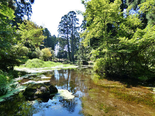 そしてこちらは下流側です。ここは標高が何mあるのかは分かりませんが、杉などの巨木に囲まれた公園内は涼しい風が吹いていて全く汗をかきませんでした。