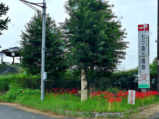 七ツ森直売所と書かれたところを過ぎるとすぐに大分県の彼岸花の名所として知られている七ツ森古墳群があります。彼岸花はこの時季に見頃を迎えるので、この日最初に寄ったのは七ツ森古墳群です。この時季にここを訪れたら絶対に外せない場所ですからね。