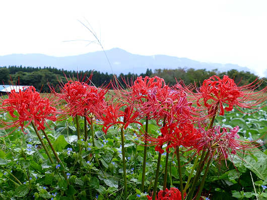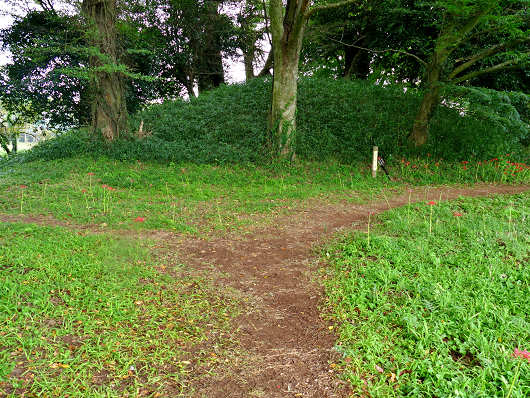 この画像は昨年の同じ時季に七ツ森古墳群を訪れた時のものですが、狭い通路の両側には無数の彼岸花がびっしりと咲いて、高原にひと足早い秋の訪れを告げる光景として、毎年ここを訪れるのは楽しみにしていただけに残念ですね。