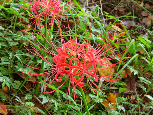 わずかに芽を出している彼岸花のなかにはこの様にきれいに咲いている彼岸花もありましたが・・・