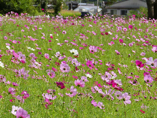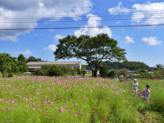 アサギマダラの撮影をしたらコスモス畑へと向かいました。この時のコスモスはまだ3分咲って感じで花よりも蕾のほうが多かったので、この記事を載せた頃がちょうど満開かも知れませんね。