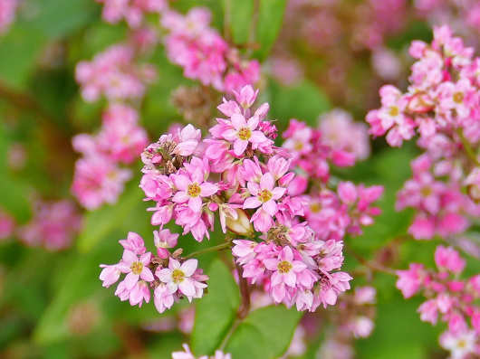 赤蕎麦の花のアップです。ピンク色をした小さな可憐な花ですね。