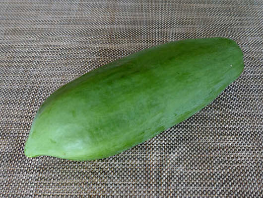 この日買って帰った青パパイヤです。腕よりも太くて長さは25cmほどありました。これでお値段は300円でした。
