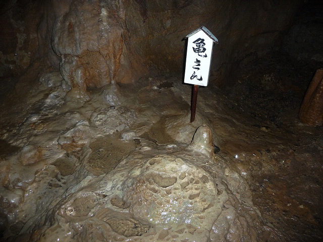 自然洞に入るとすぐに亀さんがお出迎えです、ここから幻想的な龍宮城へ亀さんが案内するんだよ。