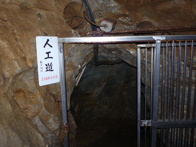 鍾乳洞への入口は人工的に掘られたトンネルです、ここは出入口が一方しかない閉塞型の鍾乳洞で、発見当時は探検口の小さな入口だけだったので外気による風化作用が少なくて保存状態がものすごく良いんだって、