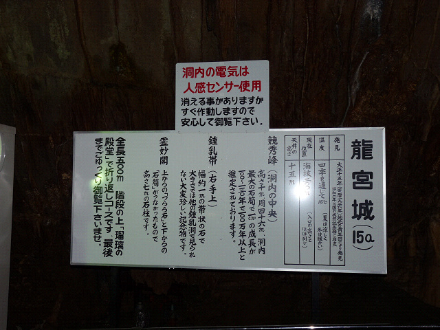 これから鍾乳洞の中に入るよ、全長は500mあるんだって、洞内の温度は15℃だよ、外気温が36℃だから21℃も低いんだね、かなり涼しそうだよ。