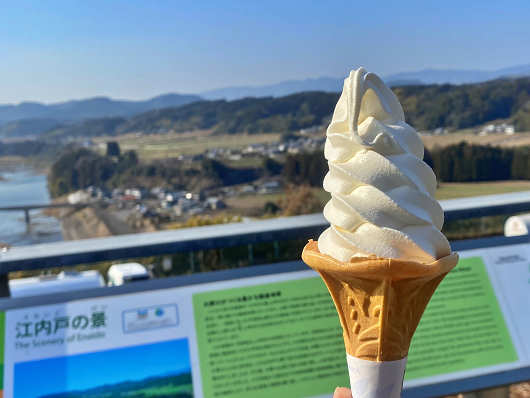 ここではスタンプを押してもらう前に、レストラン街の一角にあるソフトクリーム屋さんでソフトクリームを買いました。