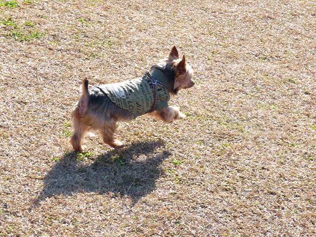 いつもお散歩をする芝生広場へやってきました、今日は珍しく誰一人居ないよね、