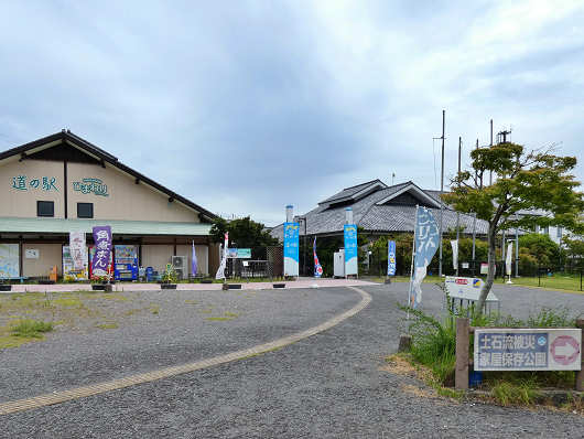 駐車場の入口付近から撮影した道の駅「ひまわり」の全景です。ここは駐車場がとても広くて普通車が180台と大型車が20台停められるそうです。ここは2021年までは道の駅「水なし本陣ふかえ」という駅名でしたが、惜しまれながら廃駅となって、今は別の運営者によって道の駅「ひまわり」として営業されています。