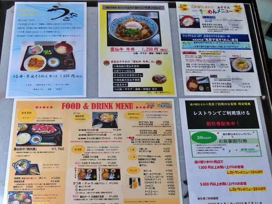 店頭にはメニュー表が置かれていて、これを見ると島原名物の具雑煮や、そーめんなどの郷土料理をはじめ様々な料理がいただけるようでした。