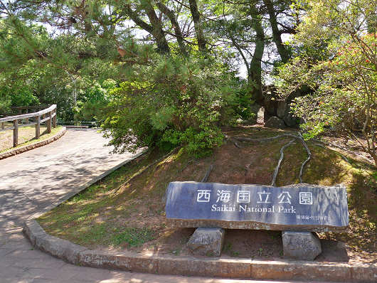 駐車場には「西海国立公園」と刻まれた石碑がありました。西海国立公園は九十九島地域、平戸・生月地域、五島列島地域とに分かれていて、今回は五島列島地域以外の2地域を廻る予定なんですよね。