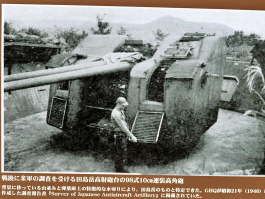 説明板にはこの様な写真も載っていました。ここに設置されていた大砲(高角砲)は、駆逐艦の対空用の主砲として開発されたもので、毎分19発の発射能力があったそうです。