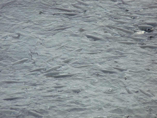 有明海へ注ぐ送水口(排水口?)にはものすごい数の魚がいました。