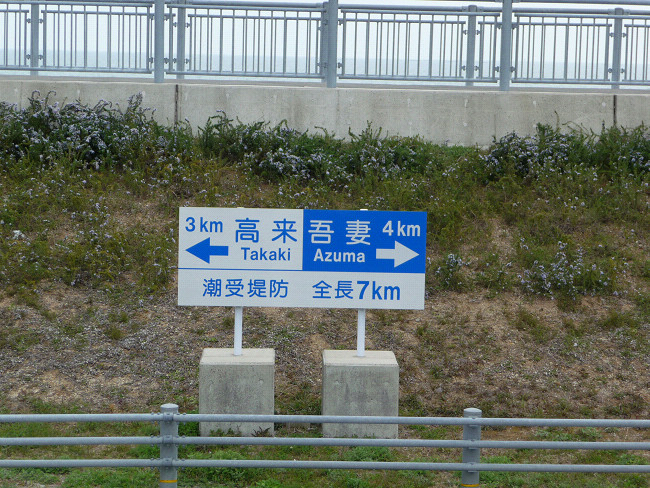 潮受堤防(堤防道路)への標識が見えてきました。