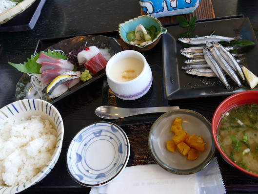 ここは海鮮料理がとっても美味しい道の駅なので私は 『道の駅定食』 を注文しました、プリプリの刺身がとっても美味しそうですね、