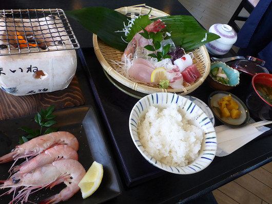 そして焼き用には3匹ついていました、まさにタカエビづくしって感じですね、しかも私が注文した道の駅定食と同じ値段の1500円なんですよね、キビナゴ9匹よりもタカエビ5匹のほうが絶対にお得ですよね(笑)