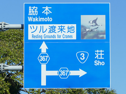 食事が終わって道の駅・阿久根を出発し出水市に入って国道3号線から県道367号線へと分かれるとツル渡来地の標識が見えてきました、ツル渡来地はもう間もなくのようです、