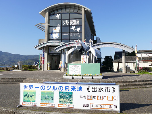出水市ツル観察センターへ到着しました、ここでは10月頃よりツルが渡来してきますが12月1日現在の渡来数は観測史上2番目の多さとなる1万4千羽あまりとなっていました、
