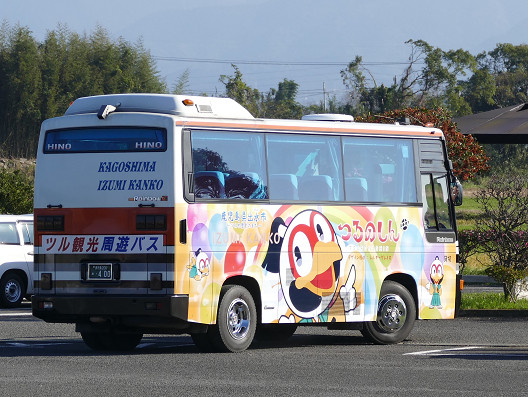 ツル観光周遊バスもこの日から運行を始めたようです、車体に描かれている出水市のマスコットキャラクターの 『つるのしん』 も今年でもう20歳になるそうです、