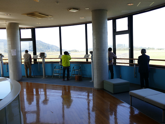 さっそくツル観察センターへ入りました、ここからはガラス越しにツルの観察を行います、