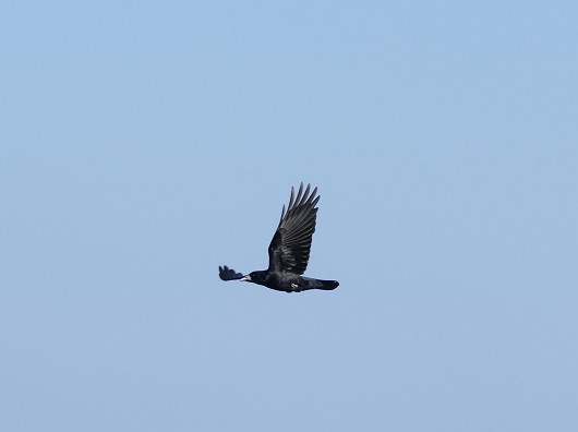 屋上へ上がったらすぐに一羽のツルが頭上へと飛んできたので慌ててシャッターを押したらカラスでした(笑)