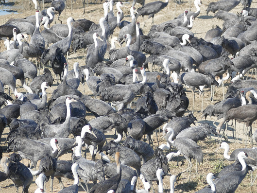 ちょっと望遠で撮影したらこんなに過密状態でした、でも全世界に棲息するナベヅルの9割もがここへやって来る事から感染症が広がったら絶滅の可能性もあるので越冬地を日本各地へ分散させる事も検討されているそうです、
