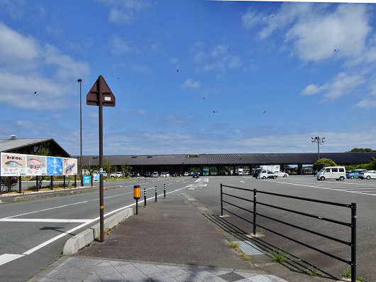 道の駅「萩しーまーと」の全景です。ここはHPによると普通車79台と大型車4台が停められるそうですが、卸売市場の周辺にも広大な駐車場があるので、もっと多くの車が停められそうでした。