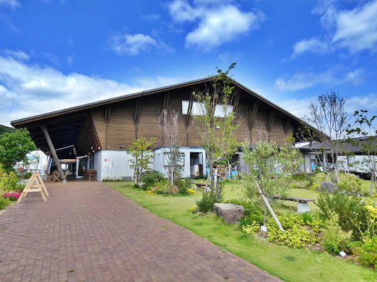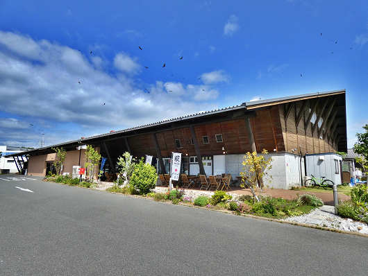 横から眺めた道の駅の建物です。ここには僅かですが芝生や樹木が植えられた緑地がありました。