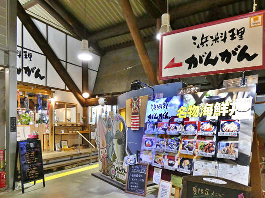 3軒のレストランも館内にあって、ここは海鮮レストラン「浜料理 がんがん」の入口です。