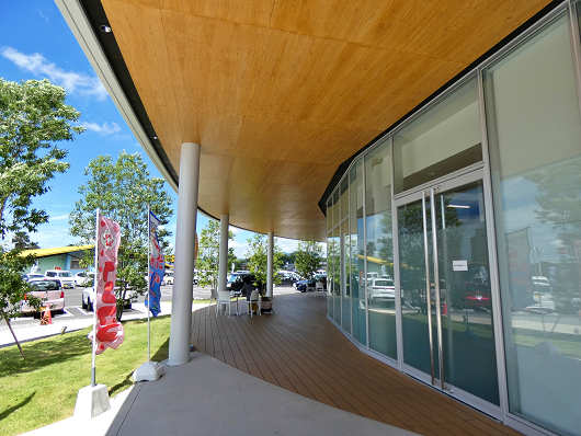 この道の駅は敷地がとても広くて、隣接していくつかの施設や駐車場があるので、まるでショッピングモールのような感じで、全体が分かるようにと、駐車場の出口付近から撮影したらこの様な画像になりました。道の駅の建物は右端に小さく見えているの白い建物で、メインの駐車場はその向こう側にあります。