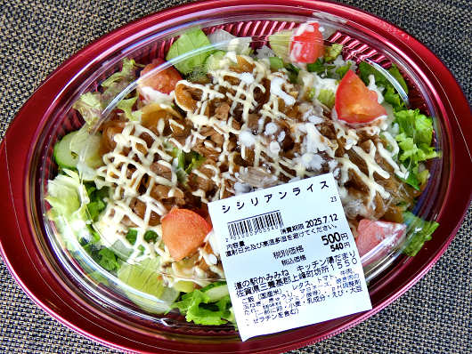 ここを訪れた時はちょうどお昼時だったので、フードコートでお昼ご飯を食べようとしたら満席で入れず、八百屋さんが営む「キッチン陽だまり」のシシリアンライスを買って車内で食べて、その後はもうどこへも寄らずにお家を目指しました。