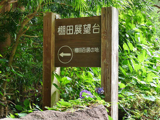 県道128号がさらに標高を上げて、しばらくすると道路沿いに棚田百選の地「棚田展望台」と書かれた標識が見えてきました。