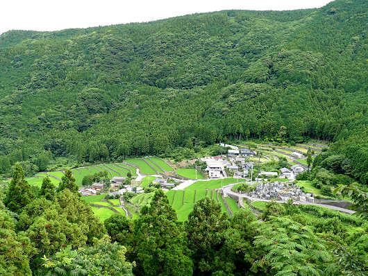 展望台から眺めた景色です。ここは千々石町(千々石川)の最上流部に当たる千々石町岳地区です。こんな山の中にも集落があって、人々の営みがあること自体が私にとっては驚きで、まさに脈々と受け継がれれてきた日本の農村の原風景って感じですね。