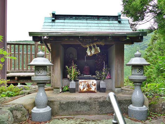 棚田展望所の横には小さなお社もありました。お社の中には小さなお地蔵様らしき石仏などが安置されていましたが、神社の名前は分かりませんでした。この辺りには民家は全く無くて、棚田の広がる集落からここまではかなりの距離と高低差がありますが、なぜこんなところにお社があるんでしょうね?
