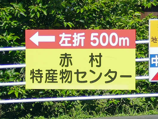 県道34号が山の中へ入って10kmほど進んだら「赤村 特産物センター」と書かれた看板が見えてきました。標識に書かれていた「赤」って福岡県田川郡赤村のことだったんですね。福岡県にこんな名前の村があるなんて全く知りませんでした。ここは予定には無かったところですが、時間もたっぷりあるので、ちょっと寄り道をしてみることにしました。