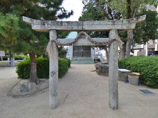 そして狭い敷地内には鳥居が建っていて、コンクリート造りの小さな社殿もありました。この神社は「金輪神社(かなわじんじゃ)」といって、この社殿の横に下松市のキャッチフレーズになっている「星ふるまち 下松」の名前の由来となった松の木があります。
