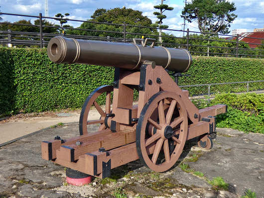 広場の一角には郡司鋳造所で造られて、長州藩と英・仏・蘭・米の列強四国との間で起きた下関戦争で使われた「長州砲」と呼ばれる青銅製の大砲のレプリカが展示されていました。